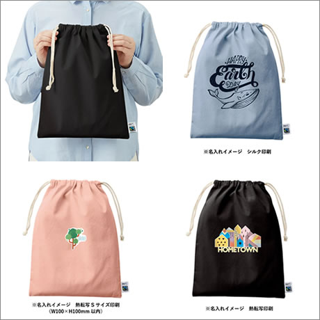フェアトレードコットン素材の巾着です。