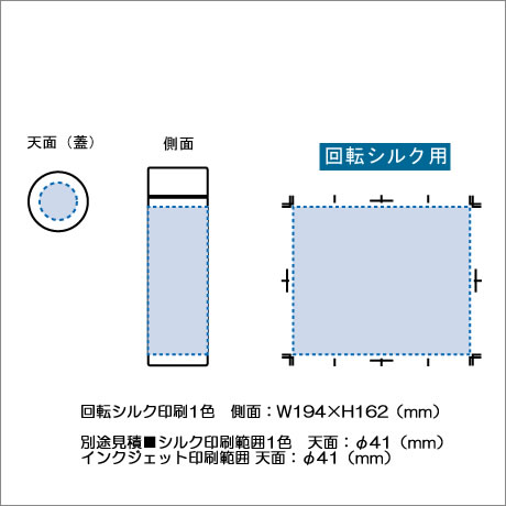 回転シルク印刷1色 側面:W194×H162(mm)