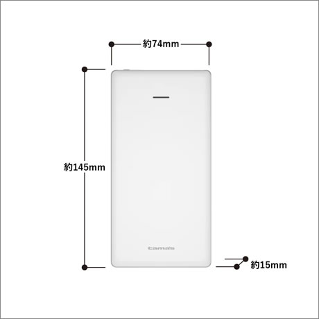 大容量リチウムイオンポリマー電池10000mAhを内蔵し、スマートフォンを複数回充電可能です。