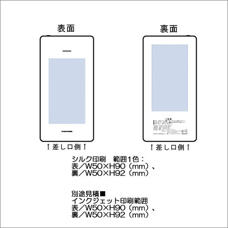 シルク印刷 範囲1色:表/W50×H90(mm)、裏/W50×H92(mm)