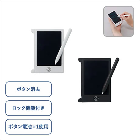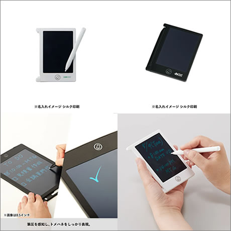 付属のペンやお手持ちのタッチペンで繰り返し書き込むことができる、ごみを出さないエコな電子メモです。