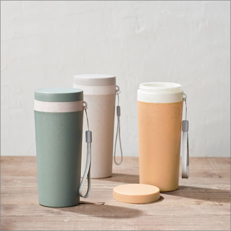 注目のエコ素材製。麦わらをつかった蓋付きのタンブラー