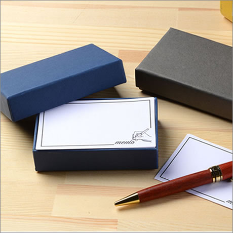 デスクに置きたい、シンプルなメモは高級な貼り箱入り。