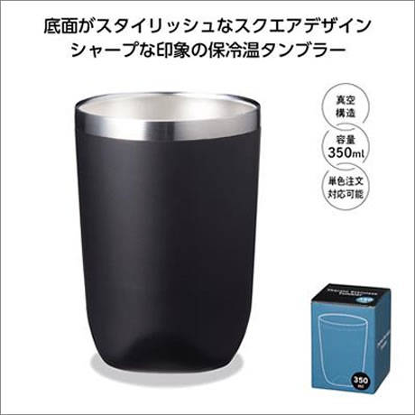 底デザインがスタイリッシュ。スクエアでシャープな印象の真空構造タンブラー。