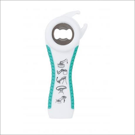 多機能オープナーは5種の使い方(ペットボトルキャップ、缶のプルトップ、栓抜き、缶詰、瓶の蓋上げ)が可能です。