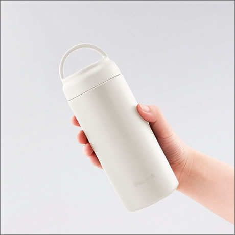 大き過ぎないサイズと量が幅広い年代に。携帯しやすいハンドル付きマグ。