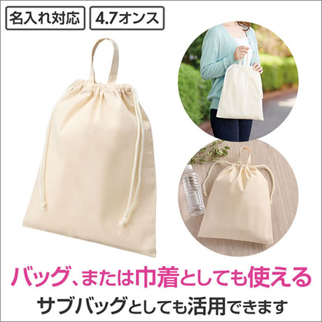 バッグとしても、巾着としても、便利にお使いいただけます。4.7オンスのしっかりしたコットン生地で、触り心地も柔らかです。