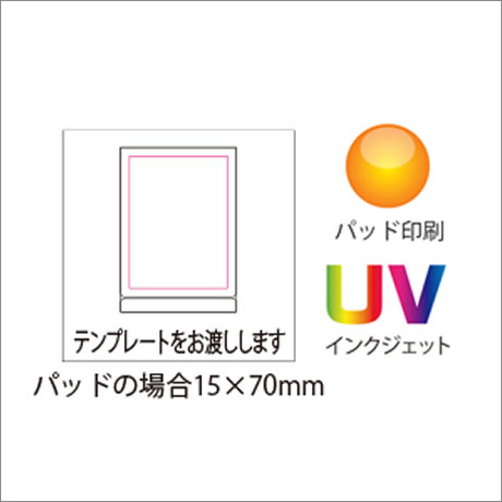 | 備考 | パッド印刷1色 :15×70mm ※インクジェット印刷はテンプレートを使用するため、別途御見積御依頼ください |
