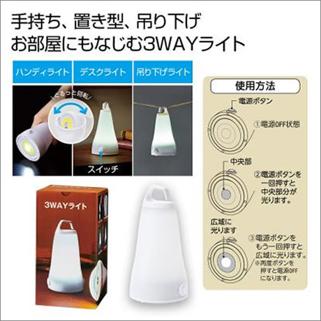 手持ち・置き型・吊り下げ、シーンに合わせて使える3WAY!
