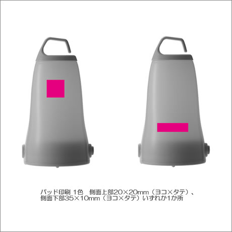 パッド印刷 1色 側面上部20×20mm(ヨコ×タテ)、側面下部35×10mm(ヨコ×タテ)いずれか1か所