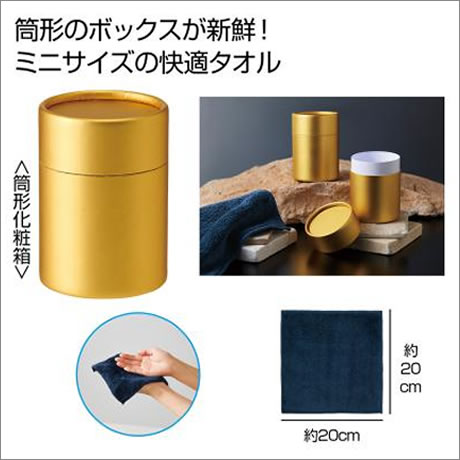 これは積みたい!並べたい!輝く金の筒に柔らかなハンドタオルを詰めました