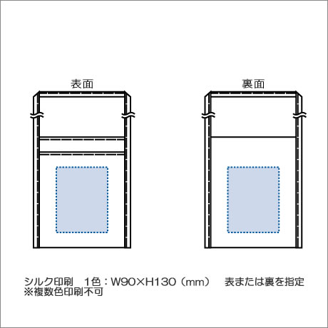 | 備考 | シルク印刷 1色:W90×H130(mm) 表または裏を指定 ※複数色印刷不可 |