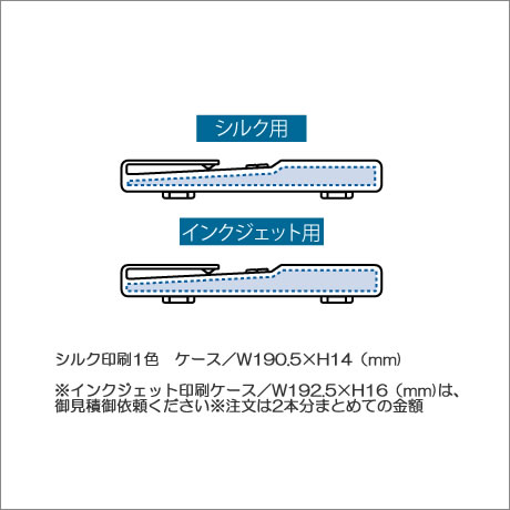 | 備考 | シルク印刷1色 ケース/W190.5×H14(mm) ※インクジェット印刷ケース/W192.5×H16(mm)は、御見積御依頼ください※注文は2本分まとめての金額 |