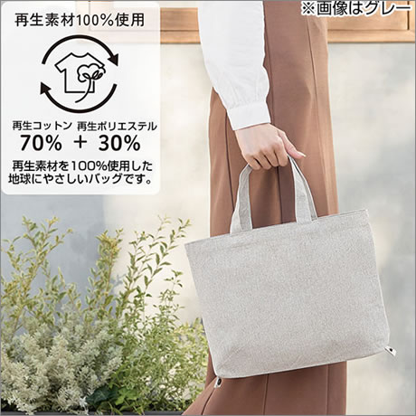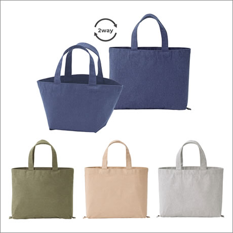 底面のボタンで形状が変えられる、再生素材100%の2wayキャンバストート。