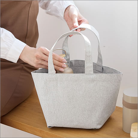 1.A4サイズが入る資料持ち運び用バッグと、マチ広のランチバッグの2way仕様。