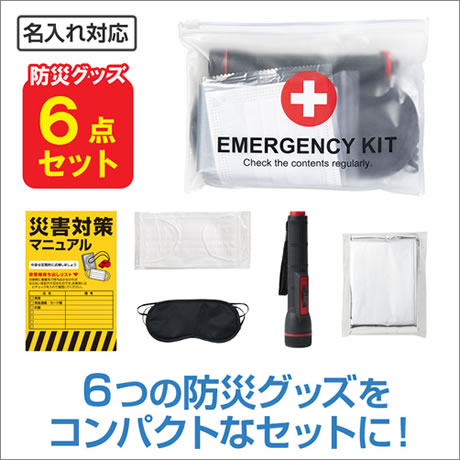 シンプルデザインで、幅広い年齢層に受け入れていただけます。避難所で役立つ6点セット