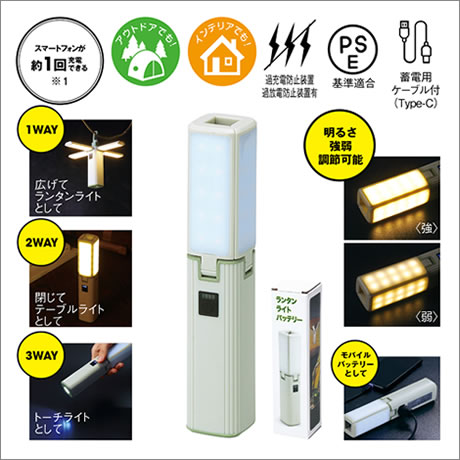 - 3WAYランタン&トーチライト付きモバイルバッテリー3000