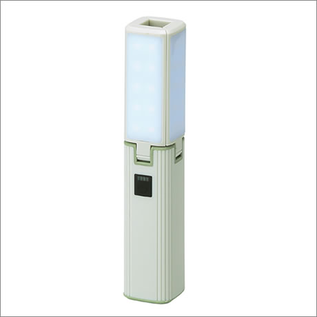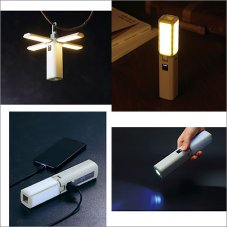 スリムボディにライト、モバイルバッテリーを搭載した非常時にも使えるアイテム。