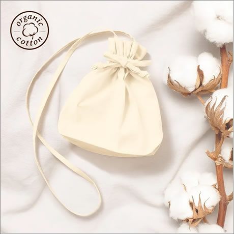 オーガニック厚手コットン 巾着ショルダーバッグ ナチュラル