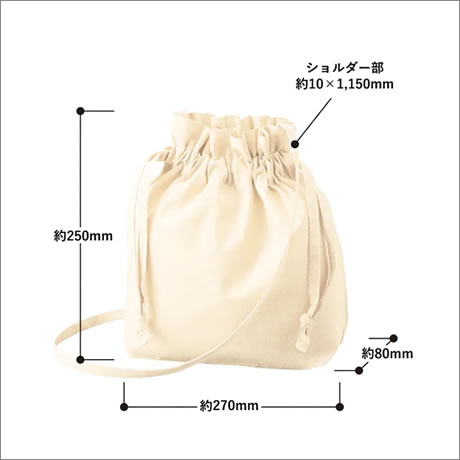 - オーガニック厚手コットン 巾着ショルダーバッグ ナチュラル