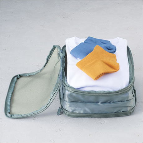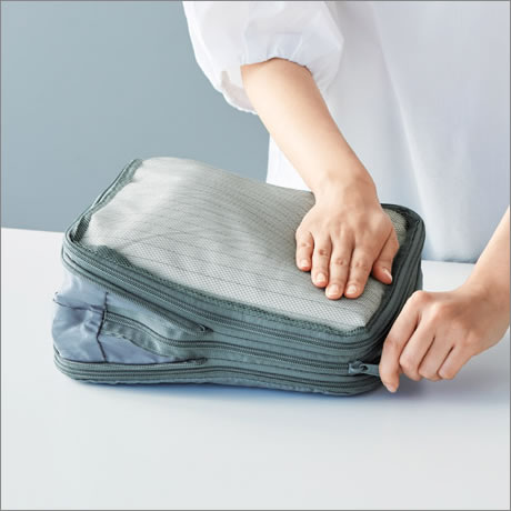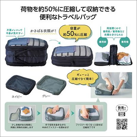 荷物を小さくし持ち運びやすくする圧縮バッグ。