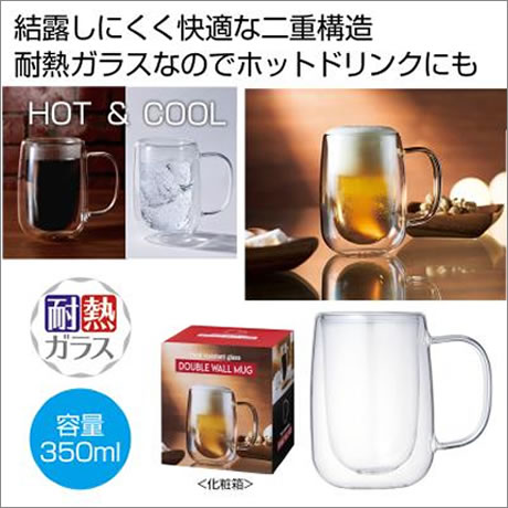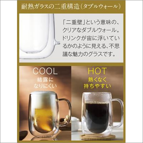 結露しにくく快適な耐熱ガラス二重構造のジョッキで、さぁ、乾杯!