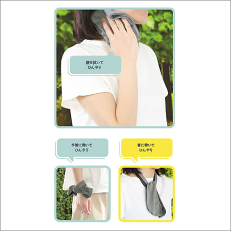 冷やしたい箇所に巻くとひんやり涼しいクールタオル