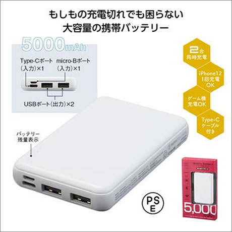 携帯やガジェット類、携帯ファンやヒーターなどの便利品に、充電切れでもこまらない携帯バッテリー。
