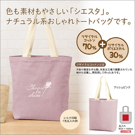 - シエスタ/リサイクルコットンマチ付トートバッグ■アッシュピンク