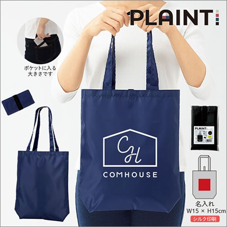 - プレント/ポケットインエコバッグ■ネイビー