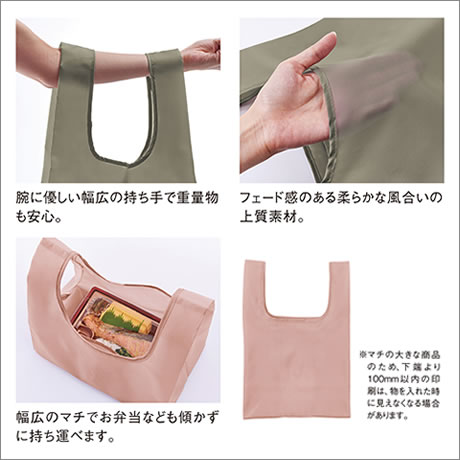 再生ペットボトルを使用した、優しい風合いの折りたたみトート。