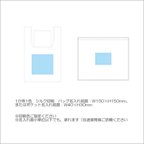 1か所1色 シルク印刷 バッグ名入れ範囲:W150×H150mm、またはポケット名入れ範囲:W40×H30mm