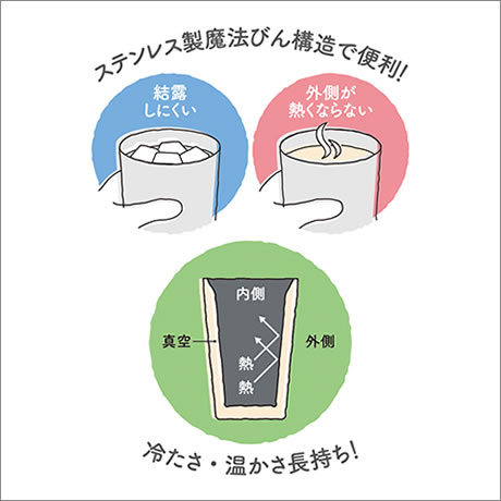 冷たさと温かさが長持ちの真空二重構造のサーモス 真空断熱タンブラーです。