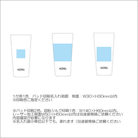 ※印刷色ご指定ください ※パッド印刷2色、回転シルク印刷1色:W140×H60mm以内、レーザー加工側面W50×H50mm以内は別途御見積ご依頼ください 内容確認が必要になります ※名入れ最小単位以下でも、承れます(別途御見積ご依頼ください |