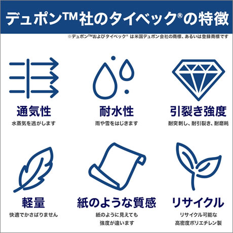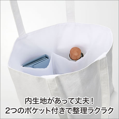 内生地も、ポケットも付いた贅沢仕様。丈夫なタイベック®生地使用で、長くお使いいただけるから会社ロゴなどを印刷すれば、さらにプレミアム感ある逸品に