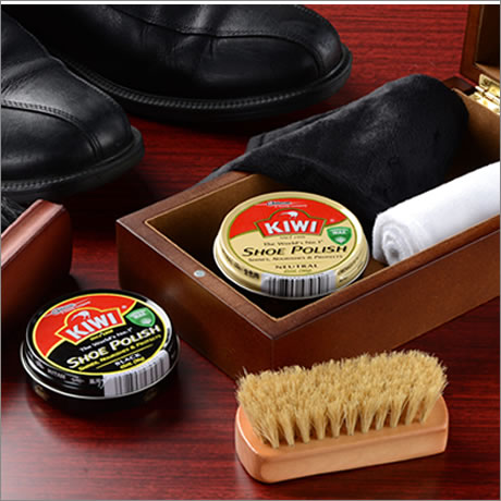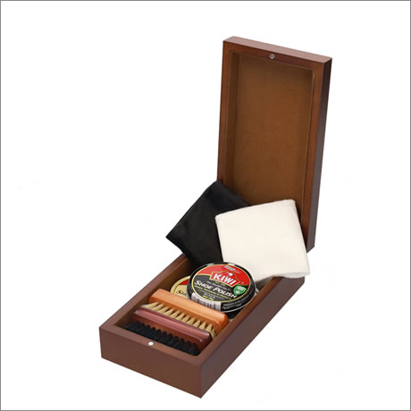 シックな木製ケースの中に、充実のシューケアアイテムをセット。