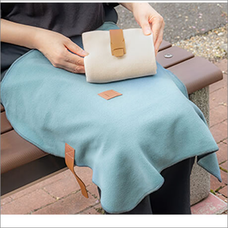 再生素材を使用した環境にやさしく、携帯しやすいからオフィスやアウトドアでも使いやすい防寒具です。