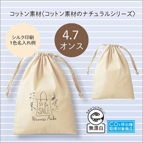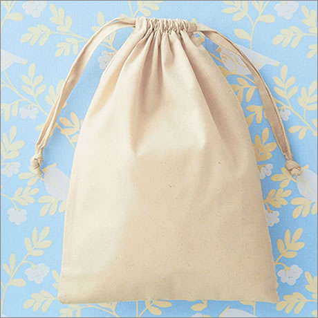 コットン素材の巾着。A4サイズ程度の物が入れられます。