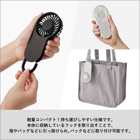 お出かけ、デスクワークに!どんなシーンでもお使いいただけるフック付き軽量型のUSBファンです。
