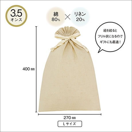 - 3.5オンス・コットンリネンギフト巾着(L)