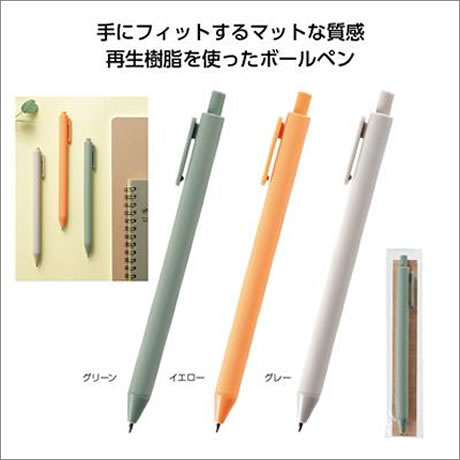 手になじむ、マットな質感。再生樹脂を使用したボールペン。