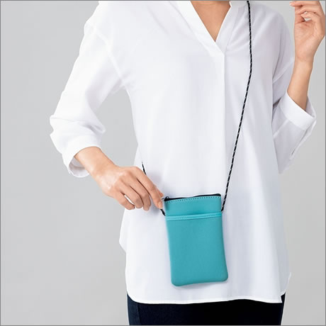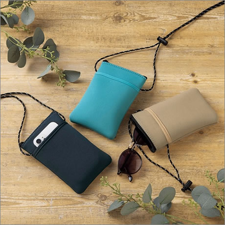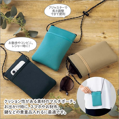 クッション性がある素材のンマルチポーチ。スマホや財布など入れてちょっとしたお出かけに最適です。