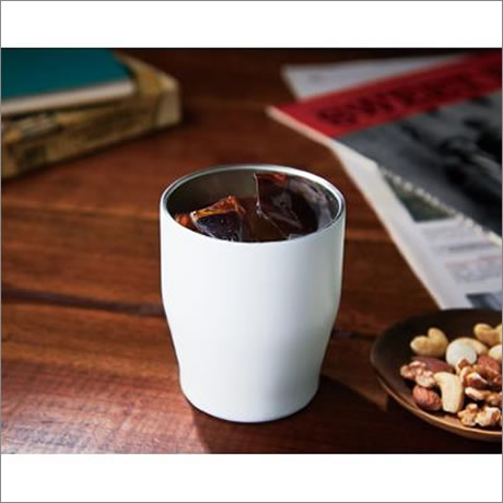 口径が広く、大きな氷も楽々投入可能。結露せず、デスクにも安心して置けるため、あらゆるシーンで愛されるタンブラーです。