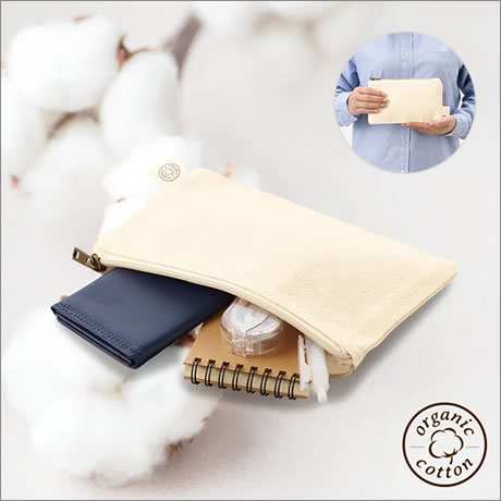 オーガニックコットンキャンバスフラットポーチ(S) ナチュラル
