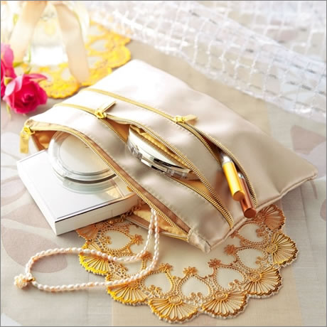 高級感のあるサテン素材を、表生地と裏生地にも贅沢に使用したワンランク上のファスナーポーチはいかがでしょうか。