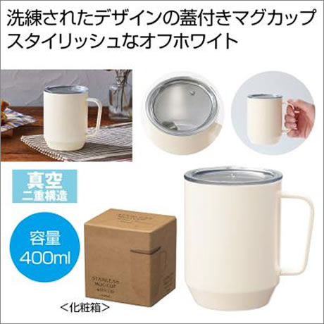 蓋付き真空ステンレスマグカップ400ml(オフホワイト)