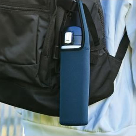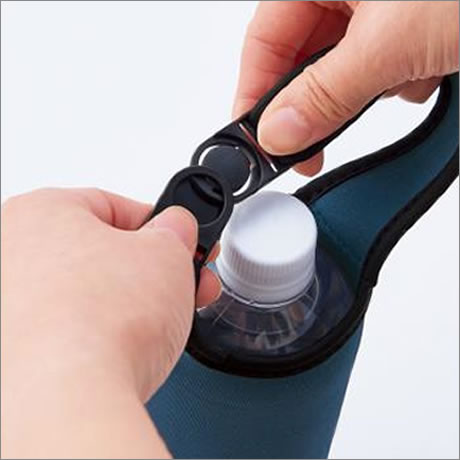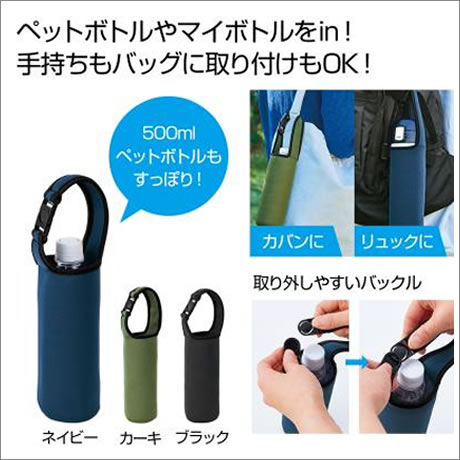 バックル付きのハンドルでバッグに取り付けられるシンプルなペットボトルカバー