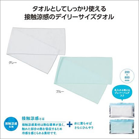 接触涼感生地のひんやりタオル。