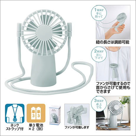 手持ちでも首に下げても。毎日携帯したいお手軽ファン。