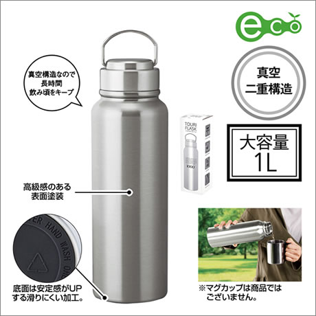 トゥーリフラスク・真空二重ステンレスボトル 1L(ハンドル付き)【色指定可】